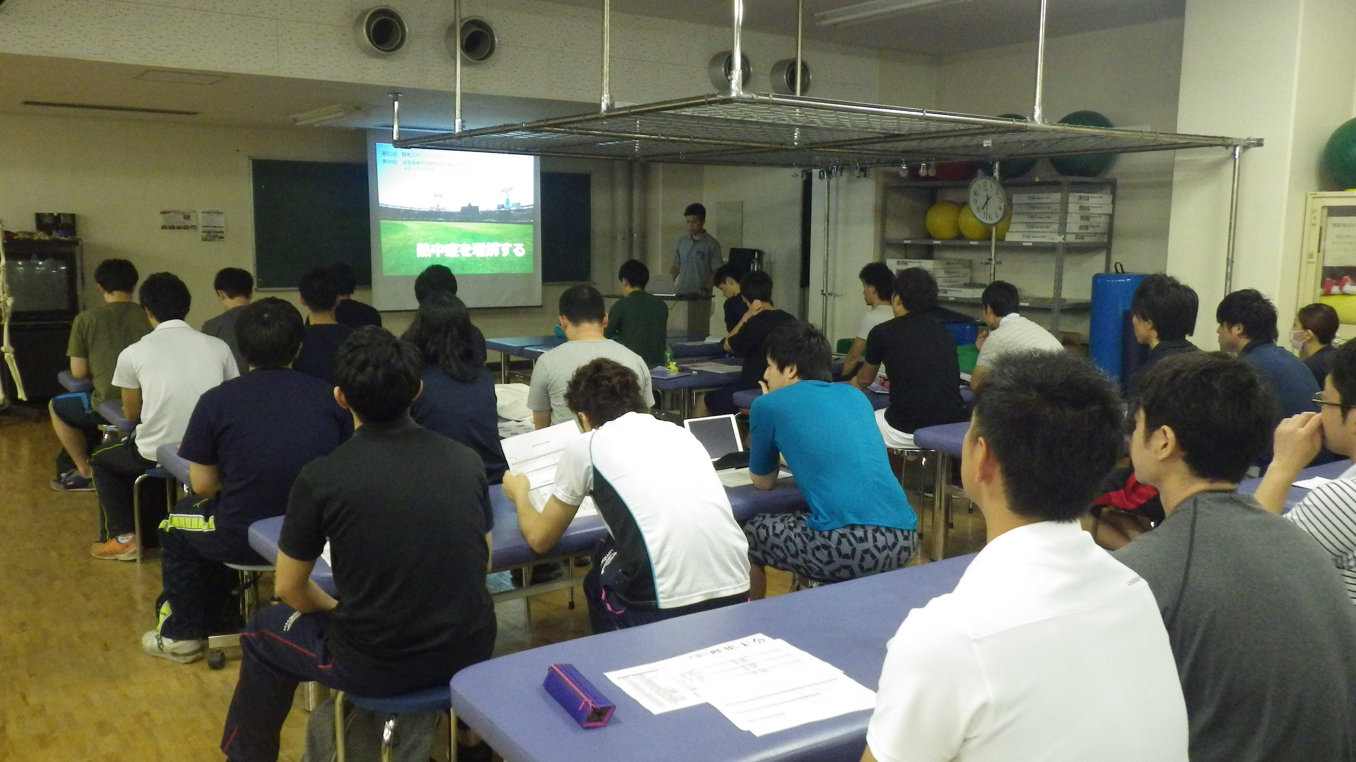 第99回 全国高等学校野球選手権群馬県大会 メディカルサポート打ち合わせ会 2017-07-02 by gsrs.public.relations 2017年6月23日,30日に本年度の夏季大会メディカルスタッフの打ち合わせ会を行いました. 1日目には対応に関する基本事項,テーピングの実技練習,2日目にはAEDや熱中症についての学習,クーリングダウンの練習を実施しました. 本年も高校球児が全力でプレーできるよう精一杯サポートしていきたいと思います.